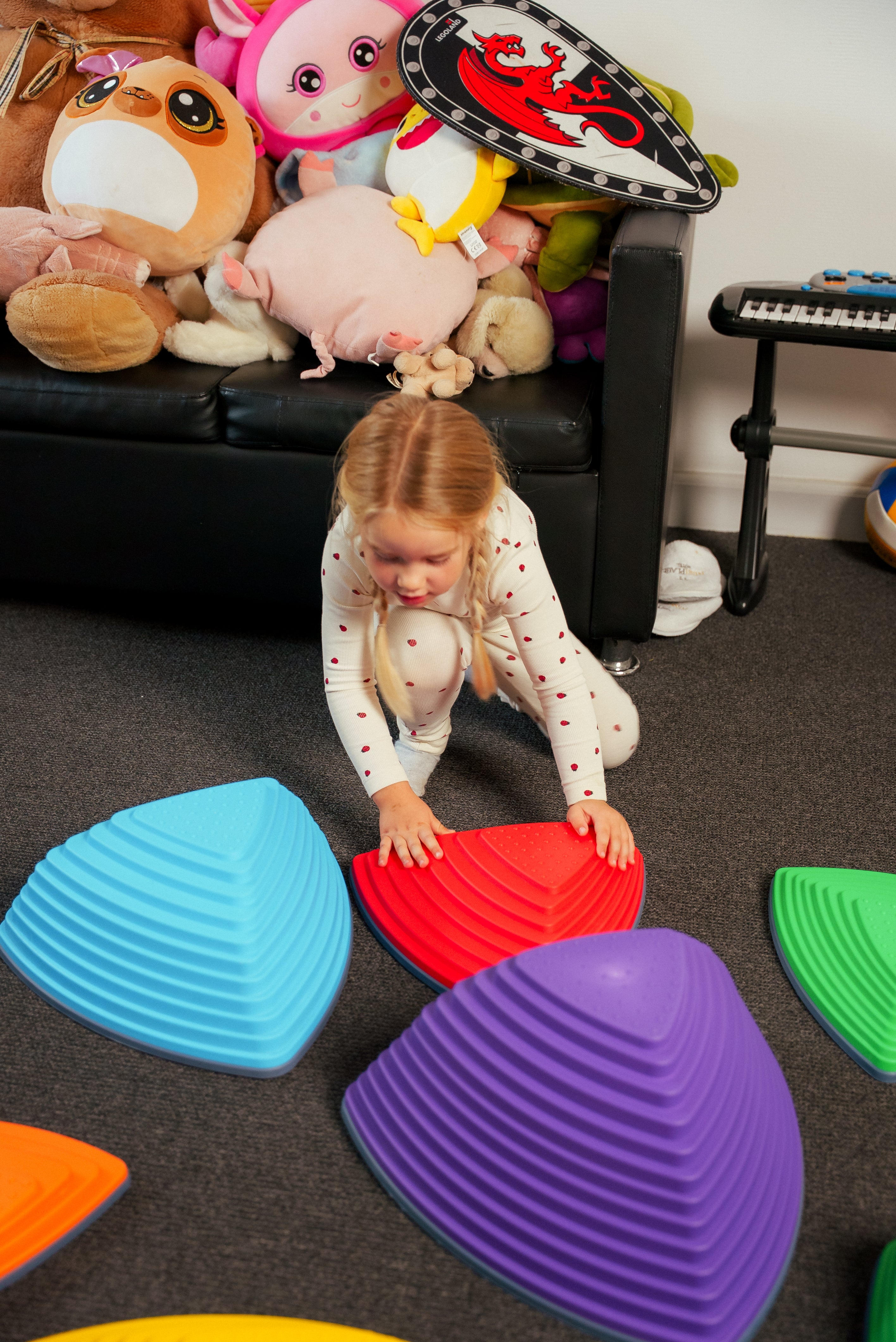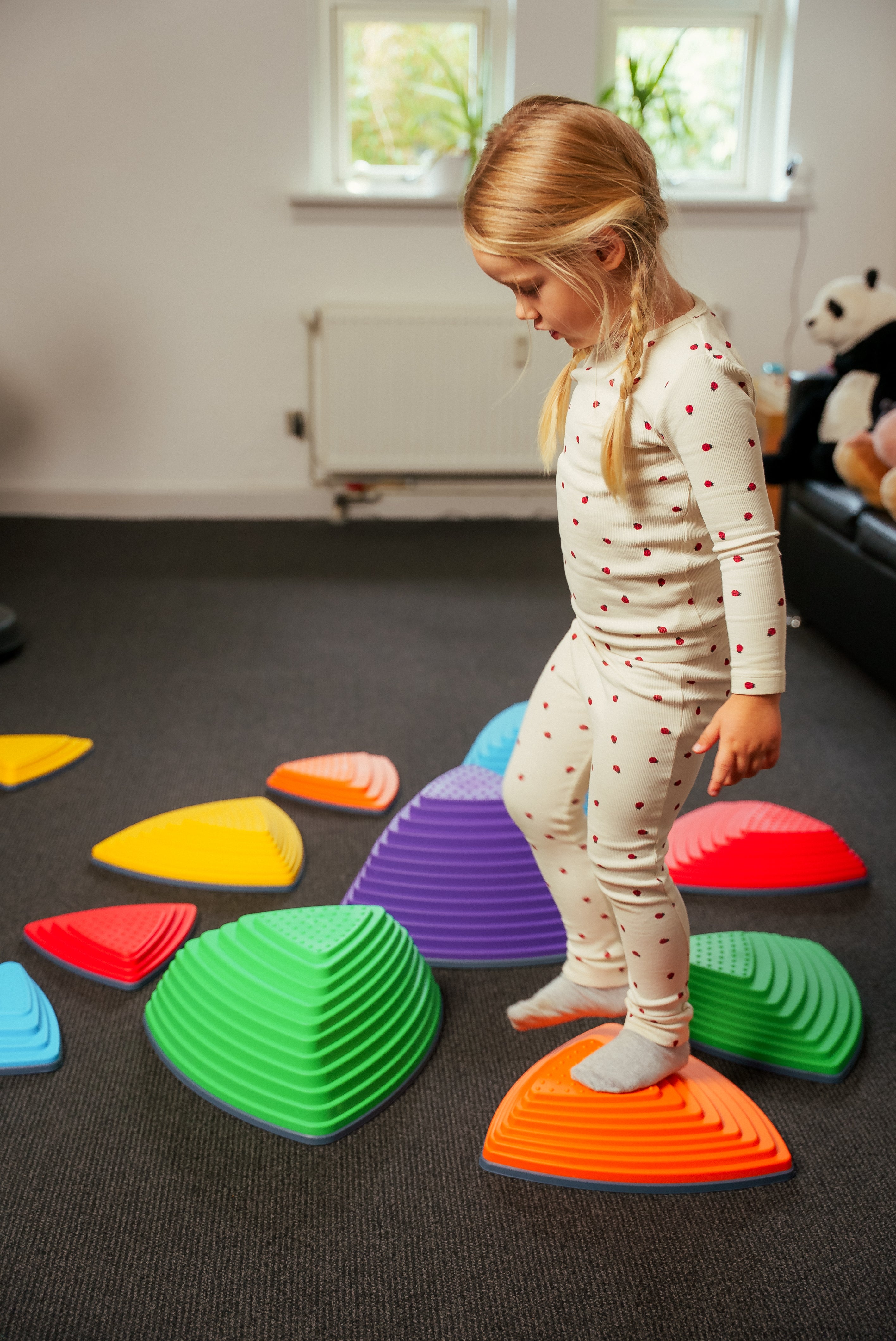 Playspace Balance Stones er udviklet til at forene leg og læring. Børn styrker deres balance, koordination og motorik, mens de hopper fra sten til sten – både indenfor og udenfor. De skridsikre sten er lavet i blødt, børnesikkert materiale og kan bruges på alle overflader.